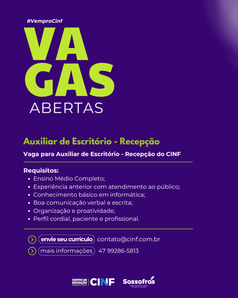 📢 Vem pro CINF! Vaga Aberta – Auxiliar de Escritório – Recepção no CINF