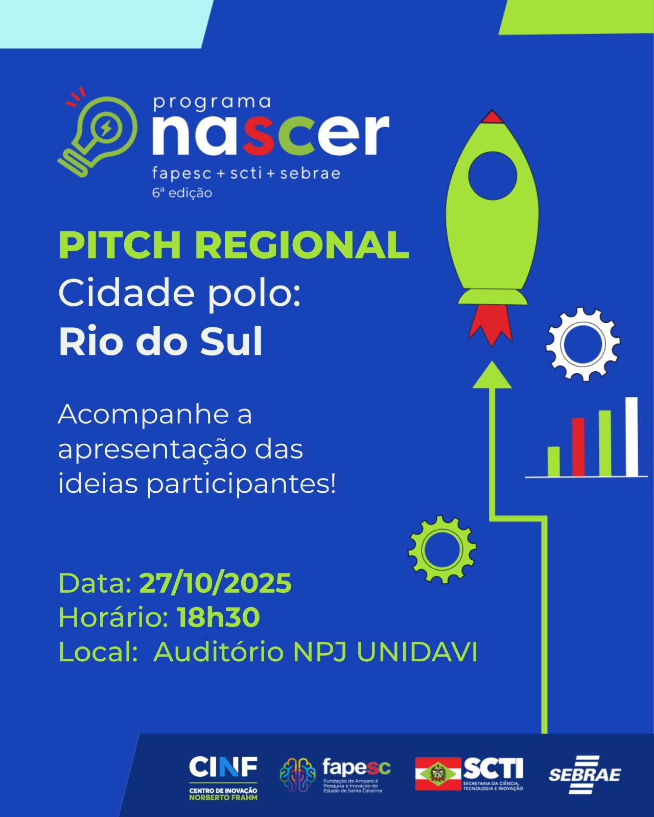 CINF - Centro de Inovação Norberto Frahm Rua Herculano Nunes Teixeira, 105 - Budag, Rio do Sul, Santa CatarinaTechValley - 16/10 - CINF Inovação, tendências e tecnologias que transformam os negócios e territórios. O objetivo do evento é promover, discutir e explorar as tendências tecnológicas e seus impactos […]