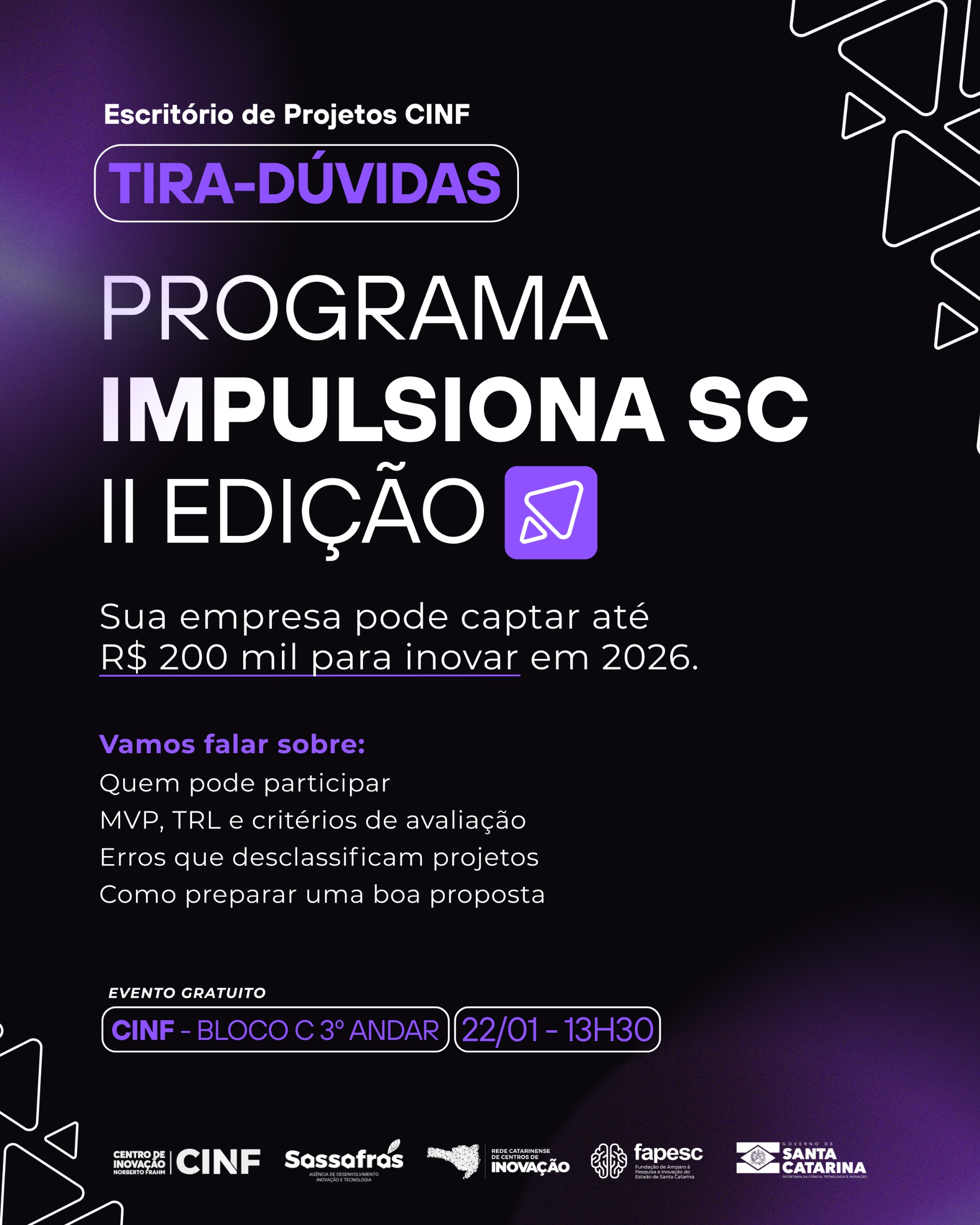 Tira-dúvidas – Escritório de Projetos CINF – Impulsiona SC – 22/01