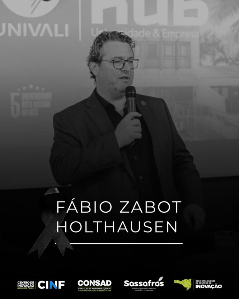 O CINF e o Ecossistema de Inovação do Alto Vale manifestam profundo pesar pelo falecimento do Sr. Fábio Zabot Holthausen, ex-presidente da FAPESC.