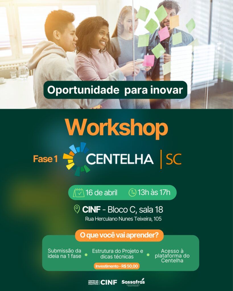 Workshop CINF🚀 Oportunidade para inovar no – Centelha 2026 – 16/04