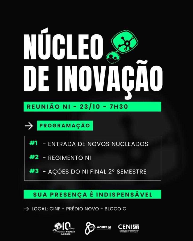 Reunião do Núcleo de Inovação Acirs – 23/10 💡 Conheça o NI