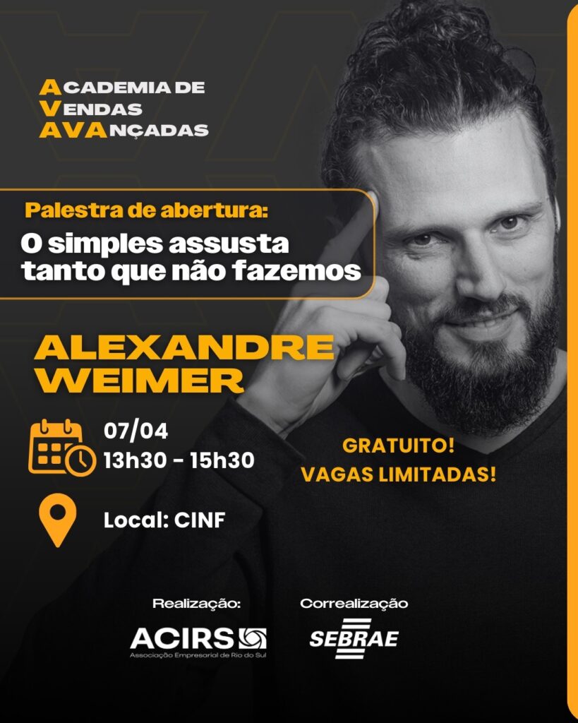 A ACIRS convida você para a Palestra de Abertura da AVA – Academia de Vendas Avançadas, um momento especial preparado para profissionais que desejam evoluir em vendas, fortalecer estratégias comerciais […]